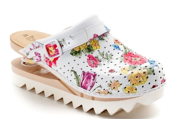 Zoccolo Aperto Con Molla Bianco Fiorito Baldo